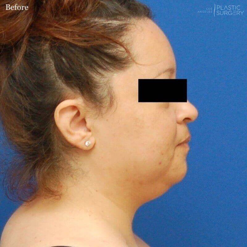 This patient had a double chin, which can be a problem area for many people. To address it, she had a high definition neck liposculpting procedure. It removes fat and tightens the neck skin. Notice how her overall facial features are much more defined, especially the jawline and the chin area. She now also has a more defined neck structure. LIPO 360: RESULTS ACHIEVED WITH LIPOSUCTION ONLY AND UNDER 2 HOURS.